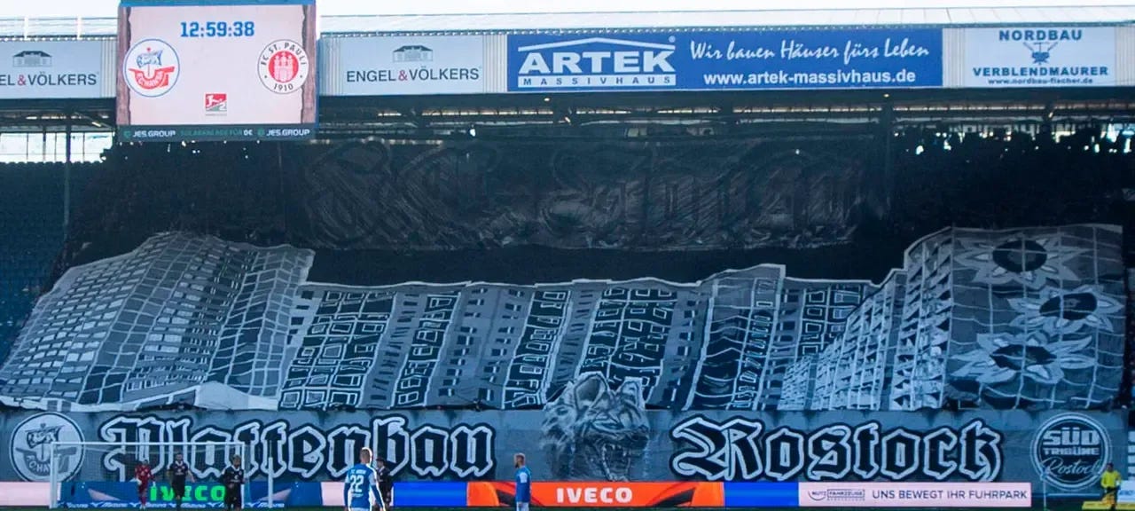 Earlier in the season, a group of ultras apparently glorified the 1992 Rostock-Lichtenhagen riots. During the unrest, a group of local neo-nazis attempted to burn down a tower block housing Vietnamese refugees. A tifo with the image of the Sonnenblumenhaus (the building had a large sunflower mural adorning its side) was unveiled alongside pyrotechnics emitting large amounts of black smoke, apparently mimicking the attack. Last season’s fixtures against SC Paderborn and Schalke 04 also saw violent skirmishes between Hansa and rival fanbases.